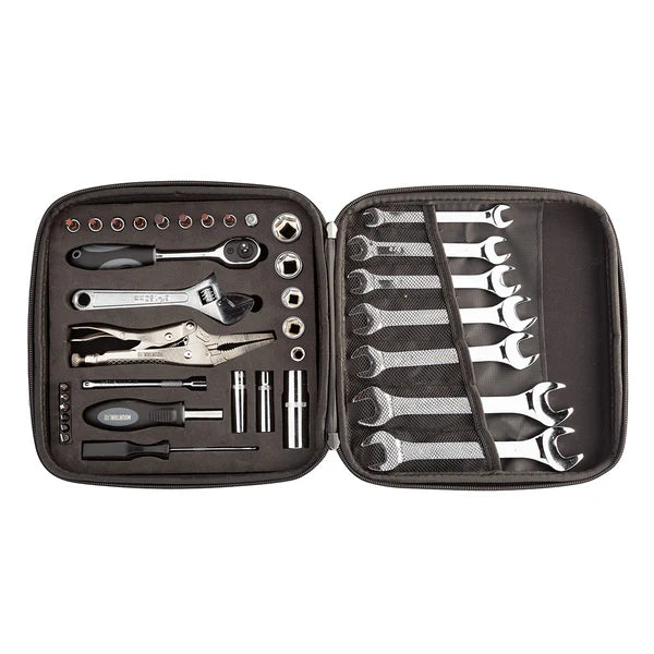 The Mountain Lab Backcountry Tool Kit has been specifically designed for backcountry repairs of your snowmobile or offroad vehicle. This compact and lightweight tool kit contains the tools required for the most common backcountry repair jobs. Tools are organized and contained in a water-resistant EVA protective case.