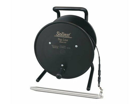 Uses a weight attached to a laser marked cable or tape, and is principally designed for use during the installation of monitoring wells. The Tag Line also provides a simple method to measure the depth to the bottom of a well. The cable or tape is mounted on a sturdy free-standing reel with a carrying handle, weight holder and brake. It comes in standard lengths of 100 ft. to 1000 ft. (30 m to 300 m). Other lengths are available by request.