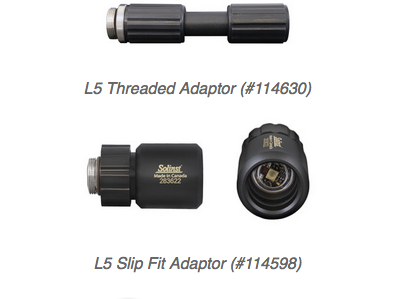 The L5 Slip Fit Adaptor is also available for a quick, temporary connection to the Levelogger. It is not recommended for long-term installations, such as the SDI-12 Interface Cable, STS or LevelSender. The L5 Threaded Adaptor is suitable in these cases.