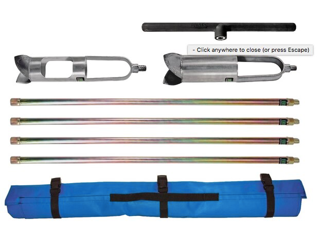 Includes a regular and mud auger, four (4) extensions 9144mm (3’) or 1219.2mm (4’ - recommend this one so you can get 5’ samples), and a cross handle, packed in a hard carrying case, transport and storage.
